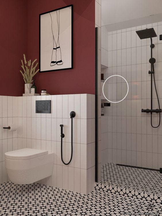 Добавить ванной комнате красок и акцентов можно с помощью цветных перегородок. Цветная шторка подойдет любому стилю, главное — выбрать подходящий оттенок.