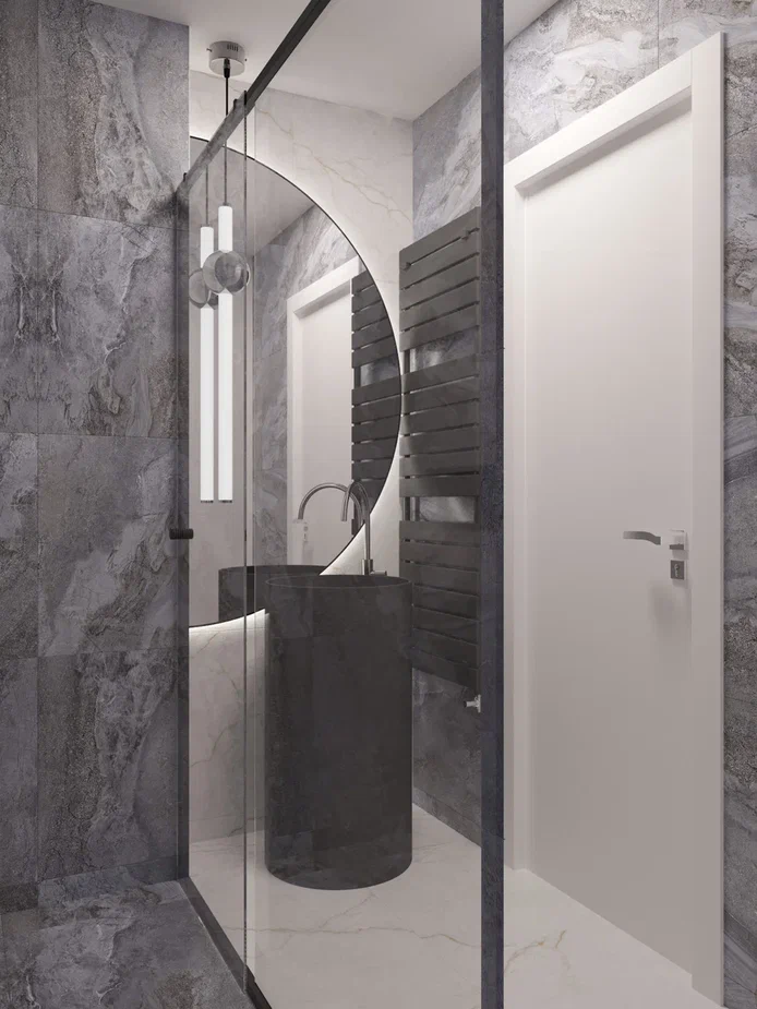 Еще один вариант сочетания текстур и фактур — соединение любых поверхностей с зеркалом, стеклом или металлом. Такое комбинирование материалов поражает своим великолепием и многообразием.