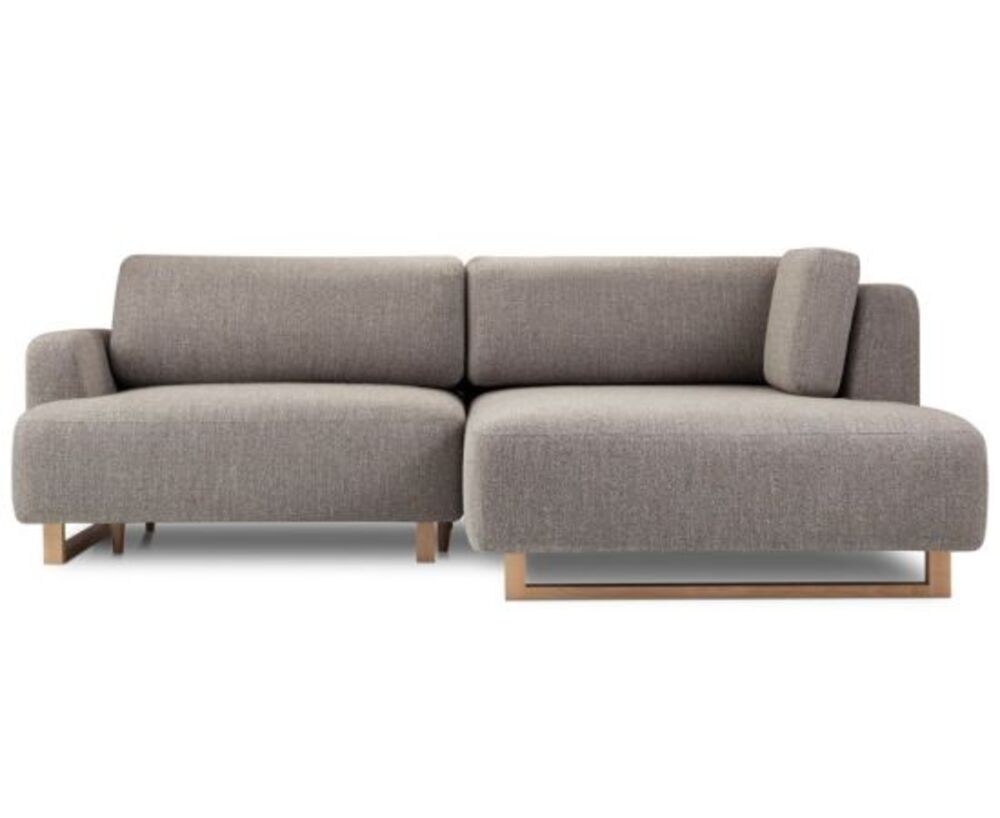 Можно найти и более компактный диван с раскладным механизмом «дельфин» — например, чтобы дополнительная секция была меньше основного сиденья. Такая модель будет занимать меньше пространства в разложенном виде и поместится даже в небольших комнатах — вроде кухни или прихожей.