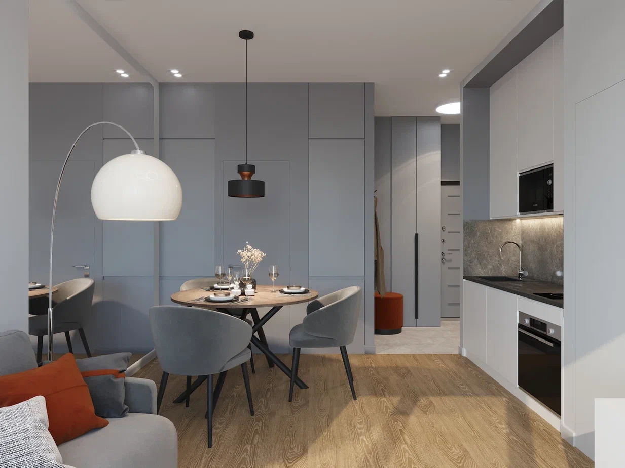 Для спокойных и прохладных оттенков дуба сонома выбирайте разных партнеров, лучшими их которых станут: