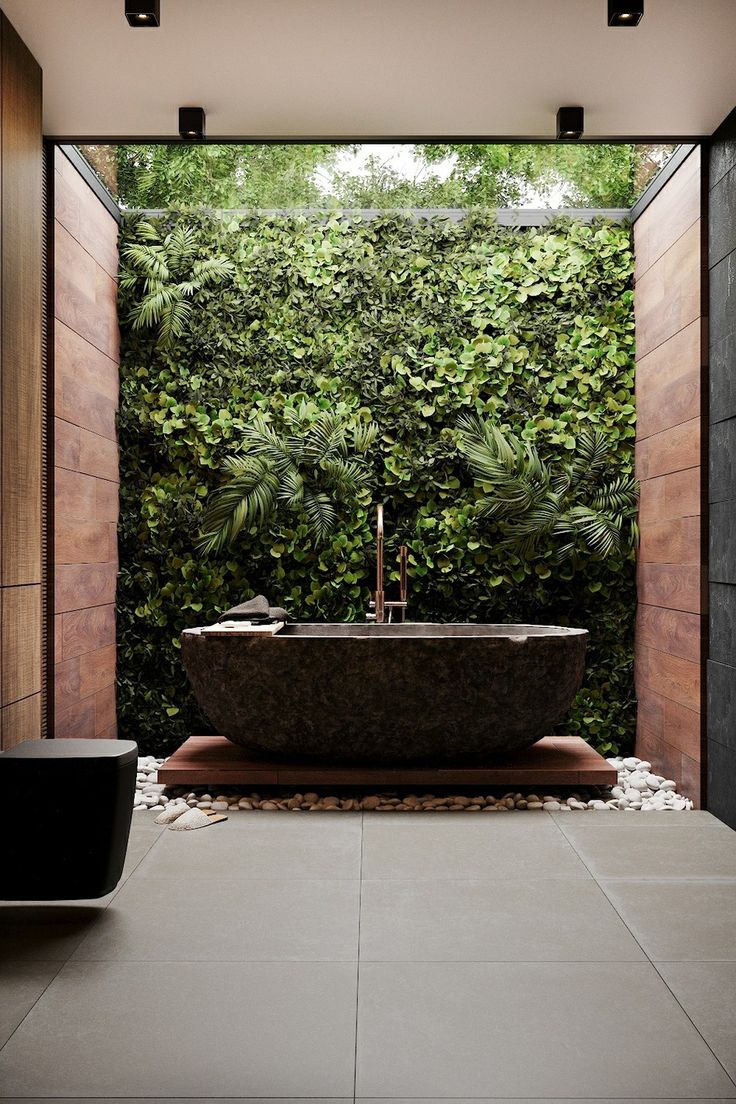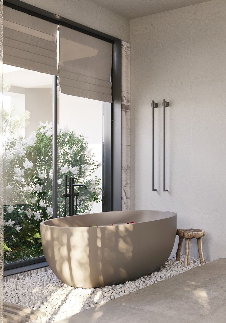 Внешне ванны из камня привлекательны, смотрятся очень стильно. Изделия из камня поглощают звук, поэтому вода по такой ванне течет бесшумно.