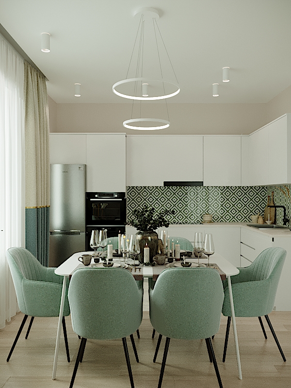 Столовая для торжественных застолий должна быть оформлена в светлых оттенках. Предпочтительны белые и тона слоновой кости. Если вы хотите добавить немного цвета, используйте легкий пастельный оттенок.