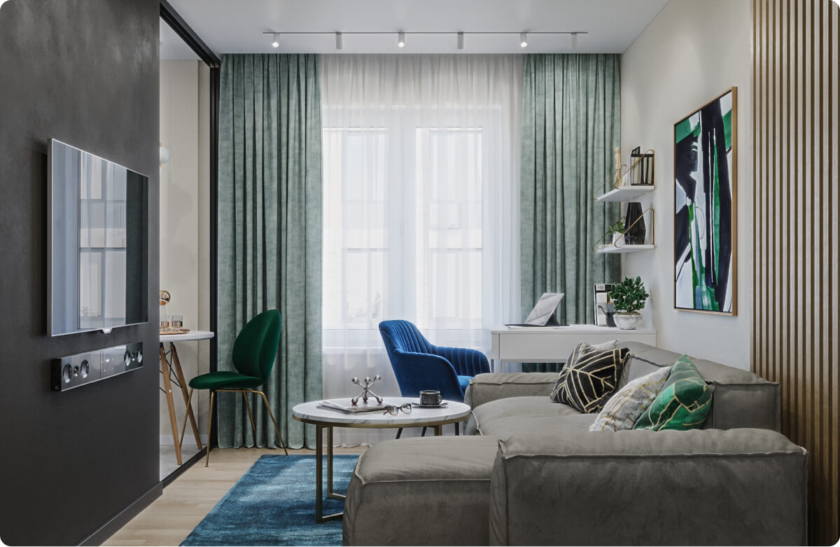 После утверждения концепции мы подготавливаем визуализации. Также наши дизайнеры предоставляют услуги по 3D визуализации проектов Создание объемной визуализации позволяет увидеть будущий интерьер в мельчайших деталях.