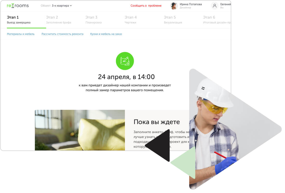Мы поможем сэкономить ваше время, избавим от лишнего стресса, связанного с ремонтом. Мы будем решать все вопросы по реализации дизайн-проекта с ремонтной бригадой.