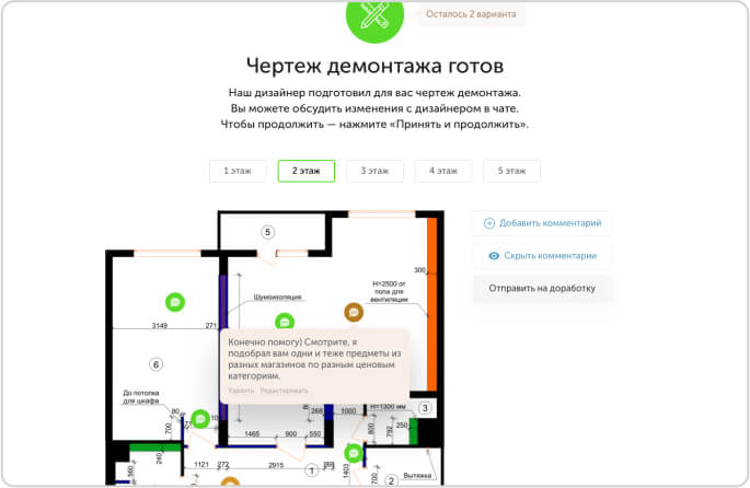 Общайтесь с дизайнером в вашем личном кабинете посредством чата, комментариев и замечаний по каждому этапу. Вы также можете общаться в чате Telegram, созданным администратором.